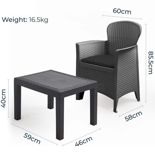 3PC Set Patio Garden Bistro Rattan Outdoor Furniture Table & Chairs High Quality Plastic Set