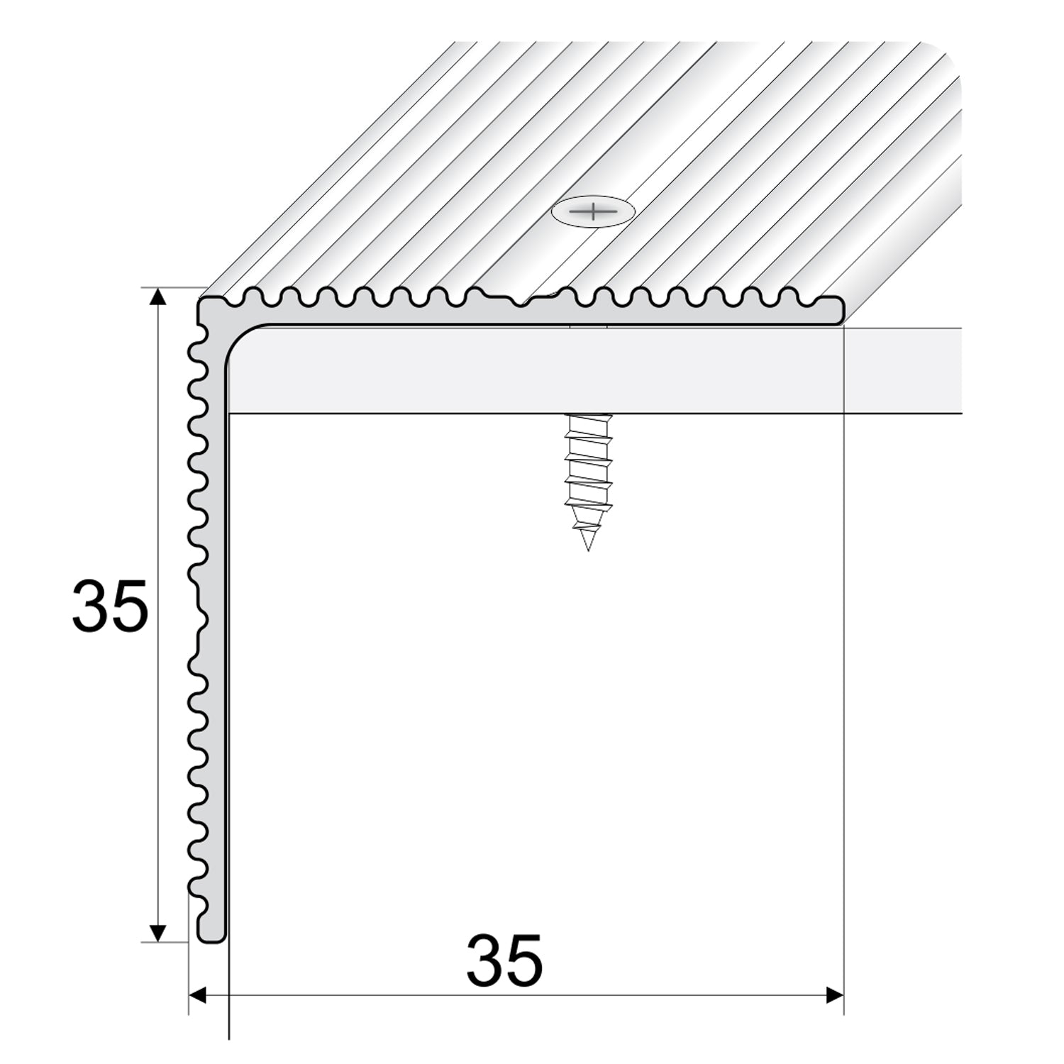 Excellent quality Anodised Aluminium stair nosing, providing you with a perfect finish, as well as preventing any damage to your stairs and disguising any imperfections that aren't so easy on the eye. Stair nosings are an outstanding way of finishing the edge of your stairs. This profile is available with two different assembly systems, Screw Mounted consisting of plugs and screws, or Self Adhesive which is based on glue