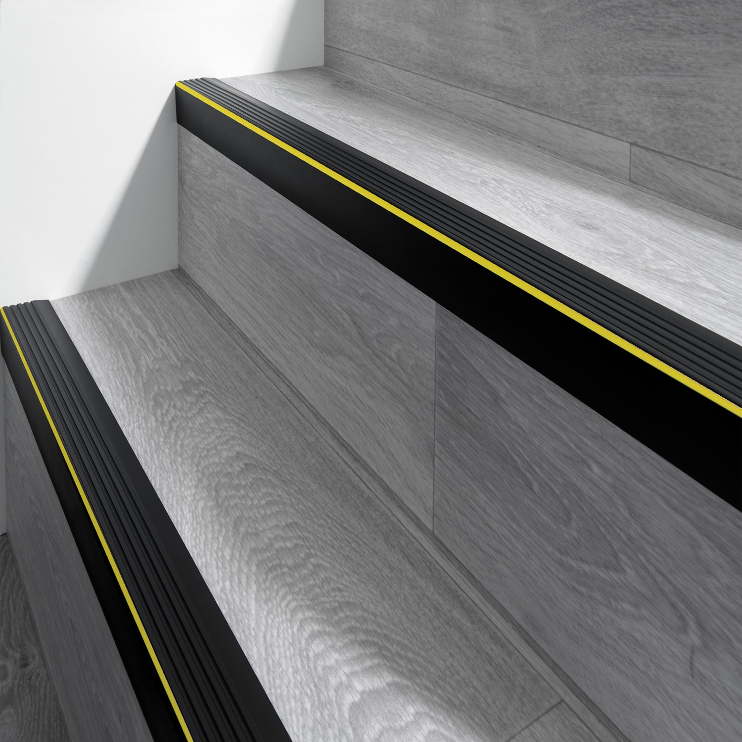 The PVC stair nosing or bull nosing is the perfect hard wearing safety measure for indoor steps. They prevent your feet from slipping and protects the stair corners from damage and can be adhered with a contact adhesive .